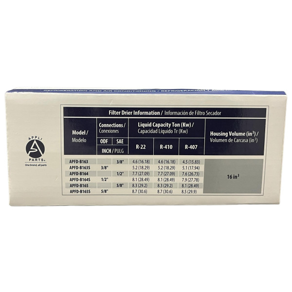 Appli Parts APFD-B163S 3/8 in ODF Biflow Filter Drier 163 Universal Replacement for Refrigeration and Air Conditioning Applications