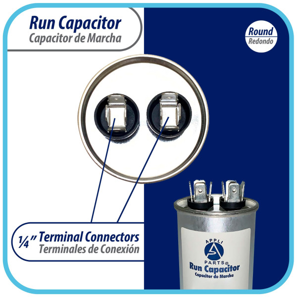 - Universal: Replaces any brand with the same capacitance capacity and voltage. Will work for 370V. 1/4 in Male Quick-connect