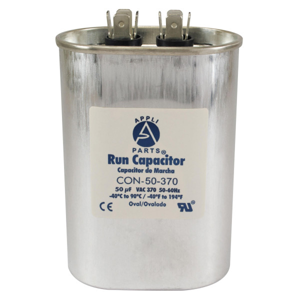 Appli Parts Run Capacitor for ac 50 Mfd uF (microfarads) 370VAC CBB65 Oval Universal fit for hvac and other applications in High in Wide CON-50-370