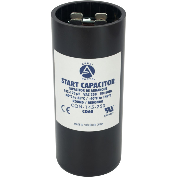 Appli Parts CON-145-250 Motor Start Capacitor 145-175 MFD uF, 250 VAC. Universal for Electric Motor Applications, 1.44 in Wide, 3.38 in Height