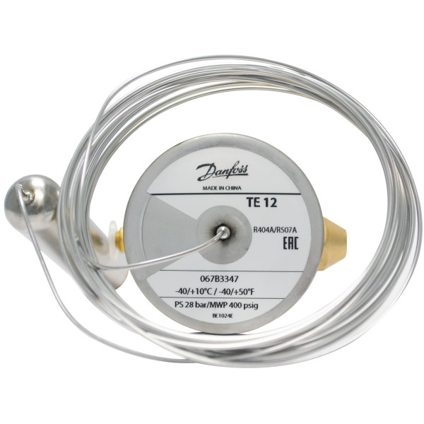 Danfoss 067B3347 TXV Element R404,R507, Flare, TE 12, External Equalized 1/4 in, 118 in Capillary Tube, -40 to 50 F includes 067B0577