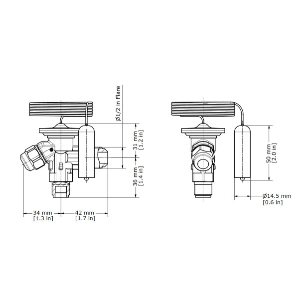 The 59 inch capillary tube connects the sensing bulb to the valve, enabling responsive superheat control.