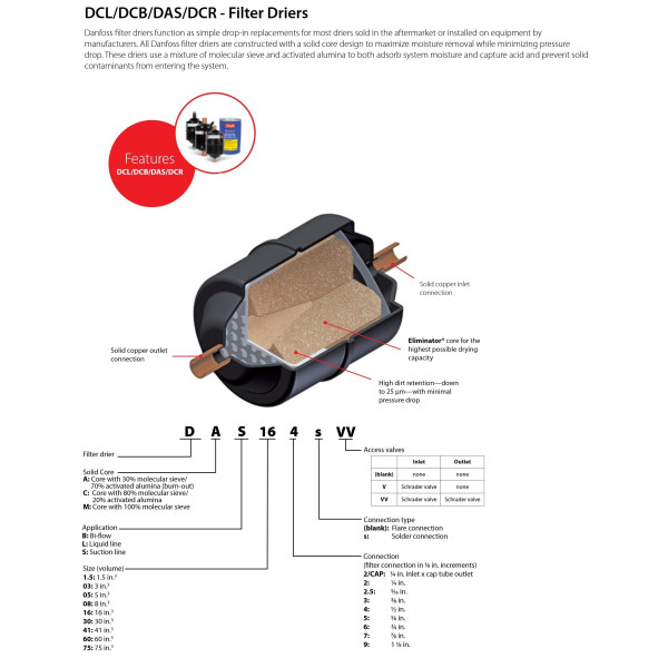 Danfoss 023Z1007 Suction Filter Drier DAS164 1/2 in 1.7-3t Flare