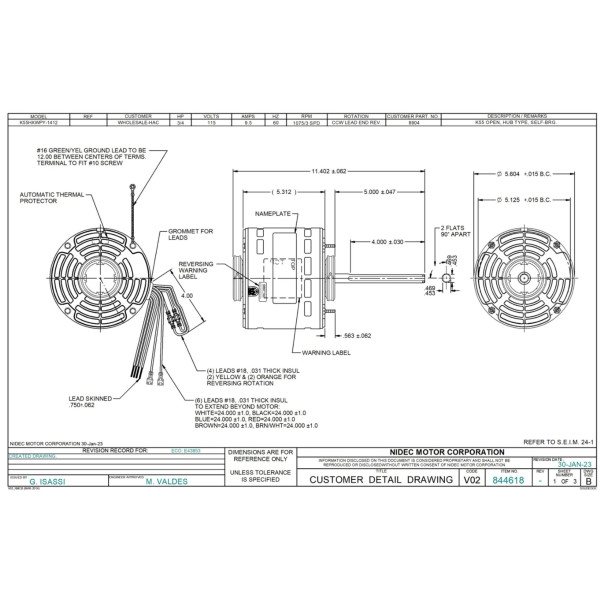 US Motors 3/4 hp 1075 rpm, 6 poles, 1 shaft, OAO Enclosure, 3 speed, 5.6 diameter, CCW, Lead End, Reversible, 115v, 60 hz, 1 ph, 15 mfd/370 VAC Run Capacitor 8904 K055WPY1412012B Fits S88-860 MOT09415 74N31 FDL1076 D728 3589 X009