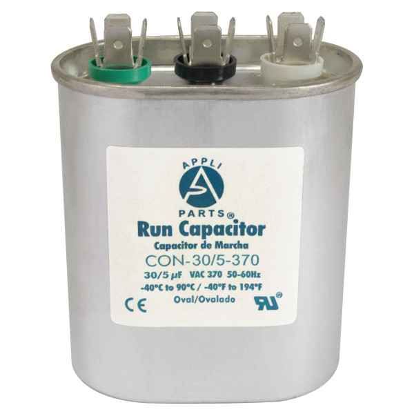 Appli Parts Condensador Capacitor de Marcha 30+5 Mfd uF (microfaradios) 370VAC CBB65 Universal Aire acondicionado y otras aplicaciones Ovalado UL E476928 CON-30/5-370