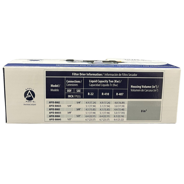 Appli Parts APFD-B083S Filtro Secador 3/8 pulg Bidireccional 083 ODF Soldable Universal para sistemas de Refrigeracion y Aire Acondicionado