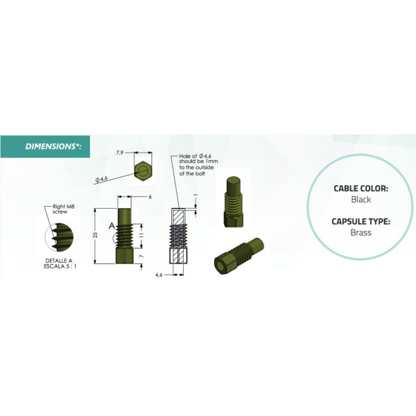Full Gauge SB19 Sensor de Temperatura con Rosca, 2.5 m (8.2 pies), Sensor NTC con Rosca para ser insertado directamente en paneles solares. Disenado para energia solar y otras aplicaciones. Rango de Temp -50 a 105 C (-58 a 221 F)